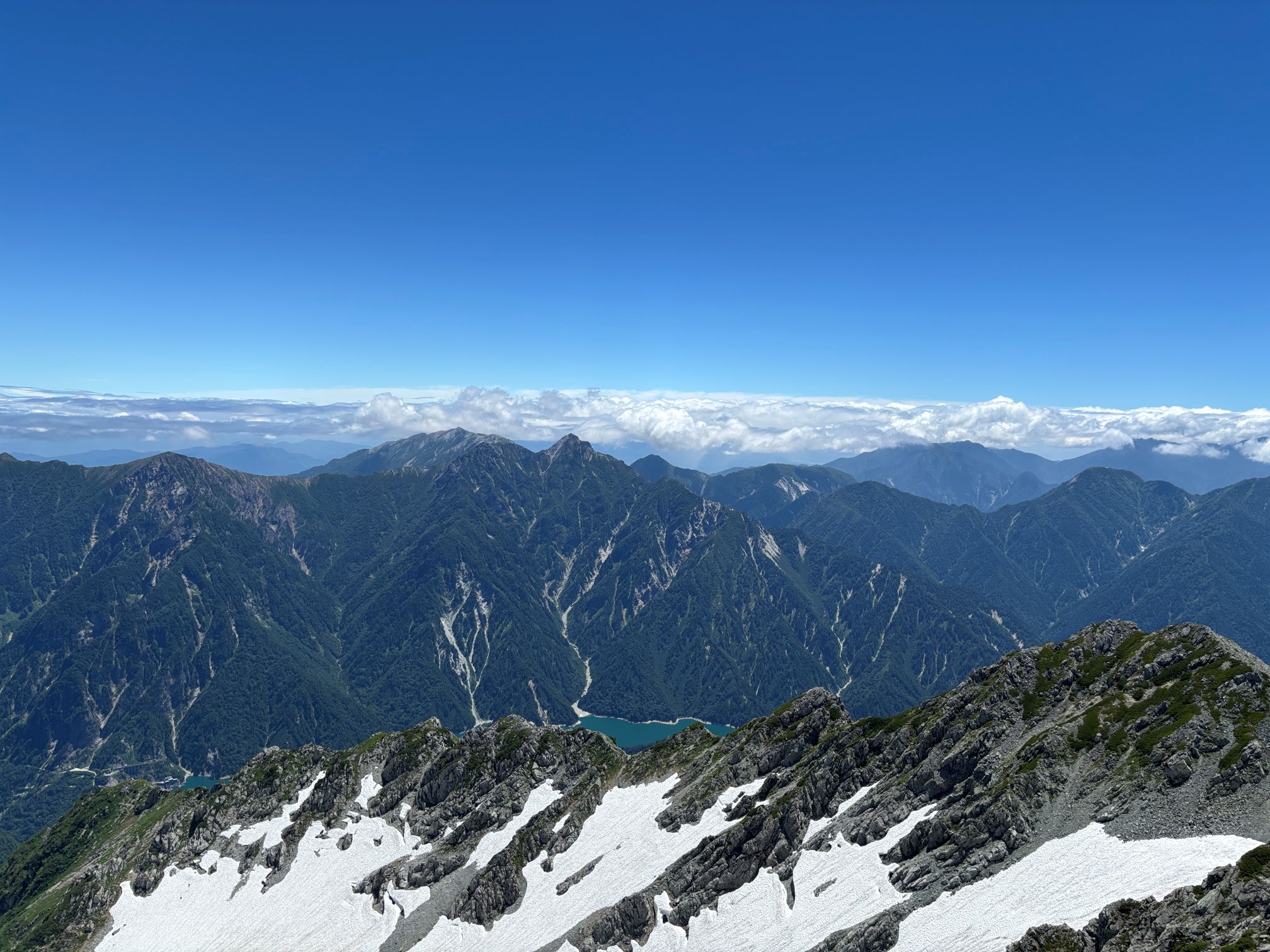 雄山から見る黒部ダムと後立山連峰