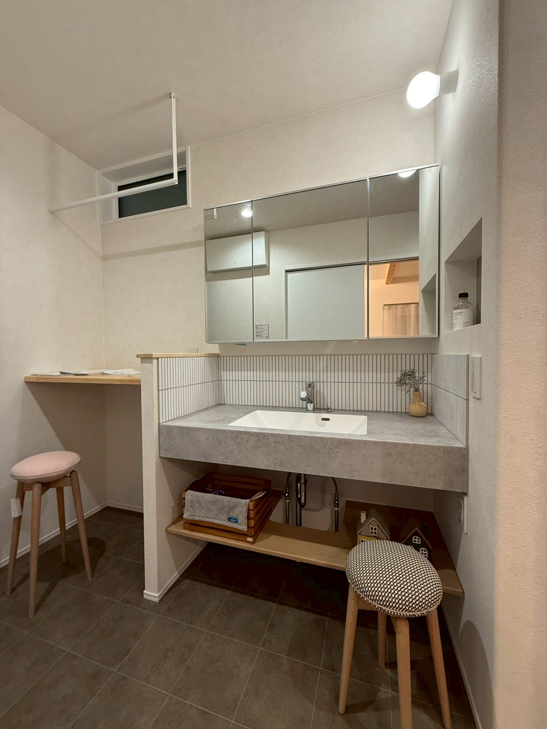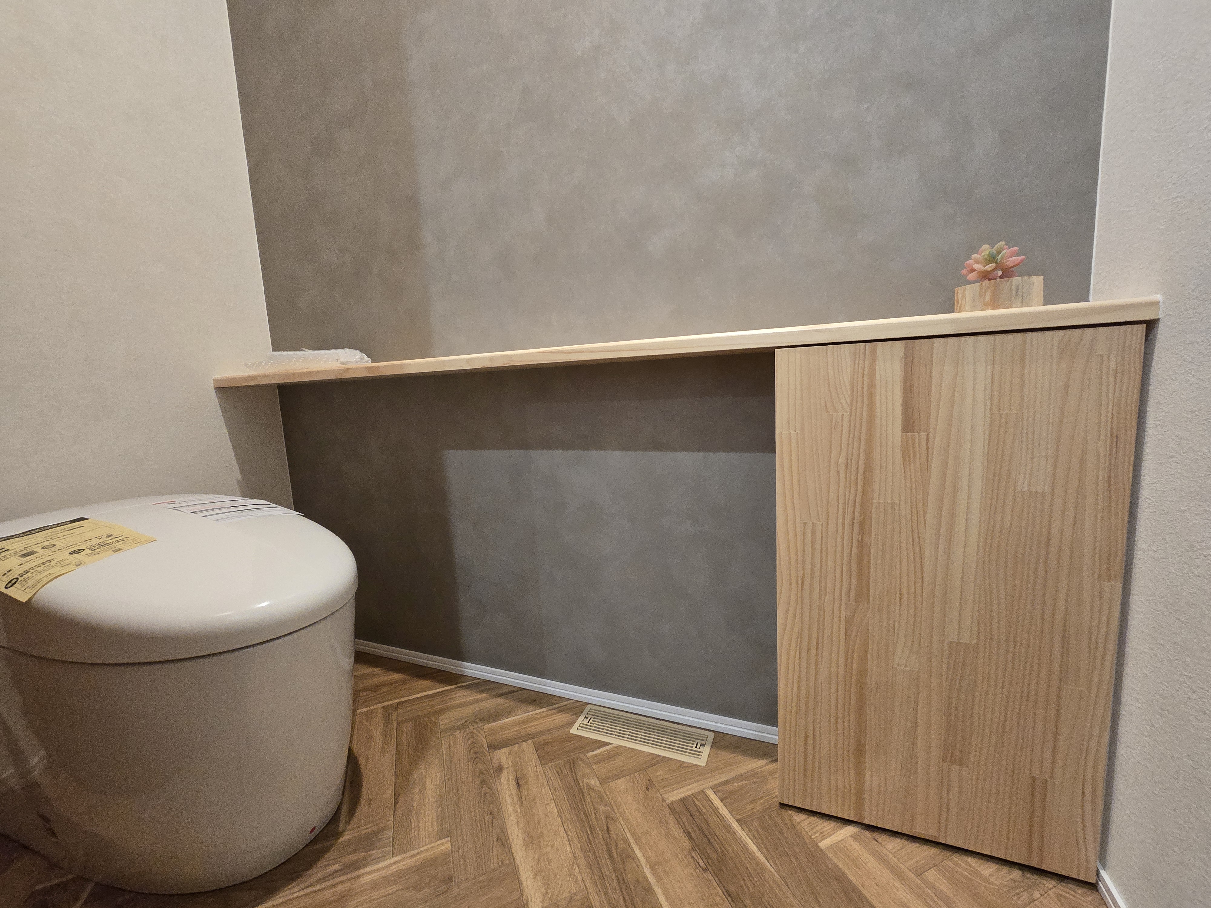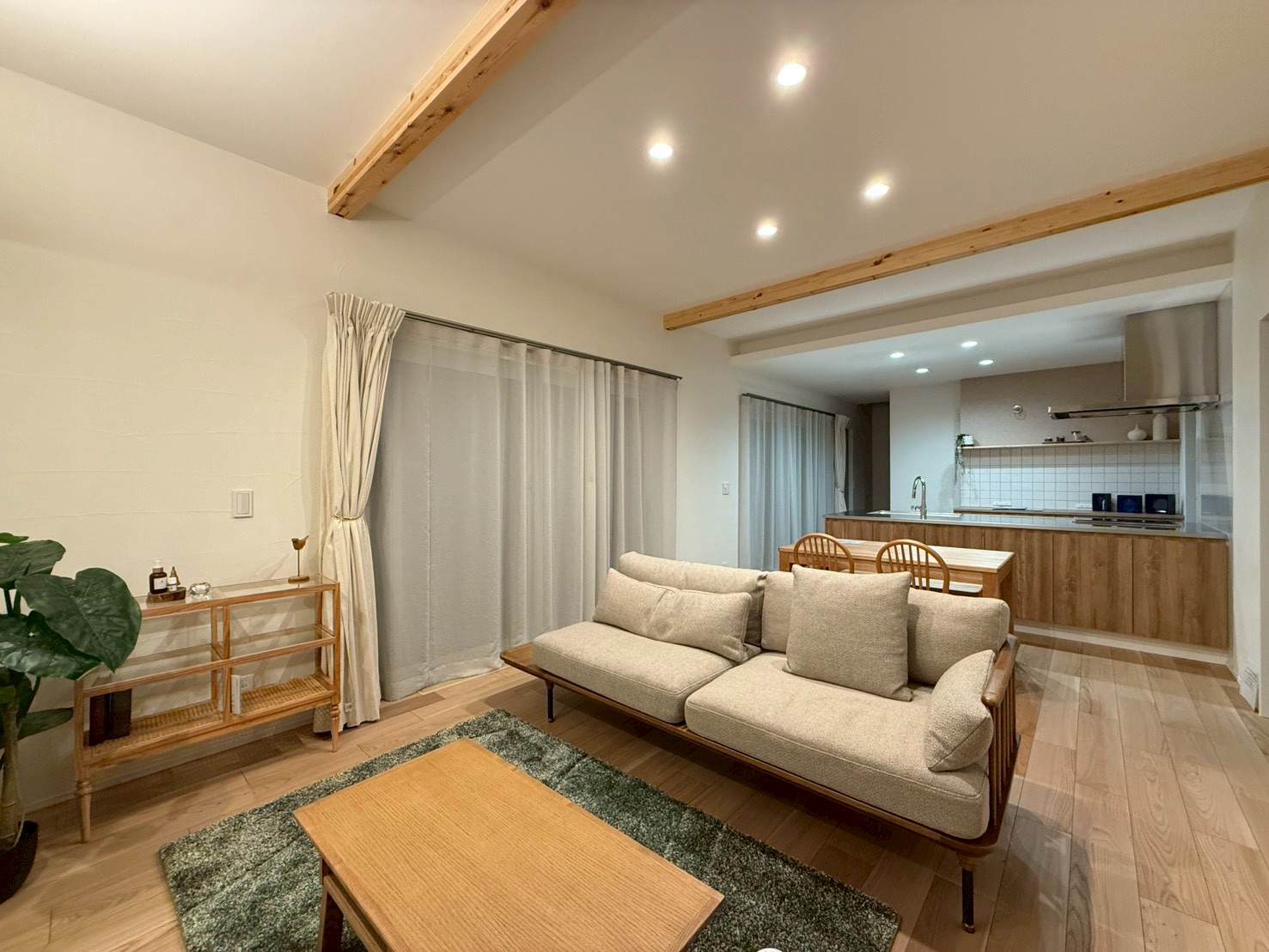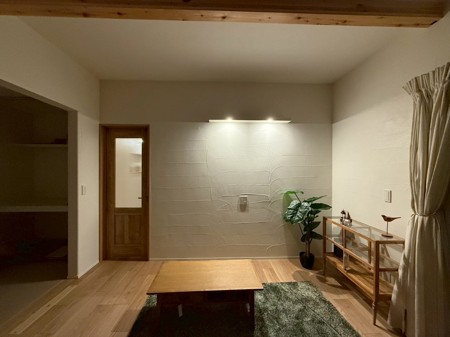 親世帯と子世帯が心地よく暮らせるように計画した共有の玄関からのホールで分かれる二世帯住宅です。 南面からの光や風を活かすパッシブ設計により、自然の力で快適さを維持しながら、 全館冷暖房システムで家中どこにいても温度差のない暮らしを実現しました。 室内は漆喰の壁と無垢材の質感がやわらかな空気を生み、快適で健康的に暮らせる住環境となっています。 さらに、太陽光パネルを搭載し、省エネ性・経済性にも優れた住まいに。 玄関からパントリー、キッチン、洗面室へと続く家事ラク動線は忙しい毎日を支え、 世帯それぞれのプライバシーと程よい距離感を保ちながら快適に暮らせる工夫が詰まっています。